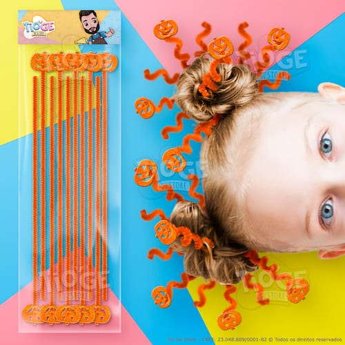 Prepare-se para uma explosão de cabelos criativos neste Halloween! O Cabelo Maluco ou Penteado Maluco tornou-se uma tradição assustadoramente divertida em escolas e festas infantis. Para elevar a diversão, apresentamos as Hastes Flexíveis de Pelúcia para Halloween, a ferramenta perfeita para transformar cabelos normais em criações horripilantes, divertidas e únicas. O pacote é composto por 10 peças com aproximadamente 32cm de comprimento. As hastes possuem aproximadamente 6mm de espessura. O aplique é fabricado em EVA com Glitter e tem aproximadamente 3,5cm. Os apliques já vêm fixados em uma ponta da haste, tornando sua utilização ainda mais fácil e prática. Se necessário, podem ser cortadas com uma tesoura comum.