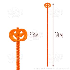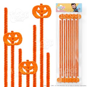 - 1 Pacote com 10 Hastes Flexíveis de Pelúcia na cor Laranja com apliques de Abóbora.