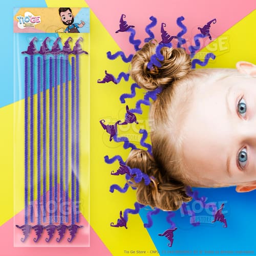 Prepare-se para uma explosão de cabelos criativos neste Halloween! O Cabelo Maluco ou Penteado Maluco tornou-se uma tradição assustadoramente divertida em escolas e festas infantis. Para elevar a diversão, apresentamos as Hastes Flexíveis de Pelúcia para Halloween, a ferramenta perfeita para transformar cabelos normais em criações horripilantes, divertidas e únicas. O pacote é composto por 10 peças com aproximadamente 32cm de comprimento. As hastes possuem aproximadamente 6mm de espessura. O aplique é fabricado em EVA com Glitter e tem aproximadamente 3,5cm. Os apliques já vêm fixados em uma ponta da haste, tornando sua utilização ainda mais fácil e prática. Se necessário, podem ser cortadas com uma tesoura comum.