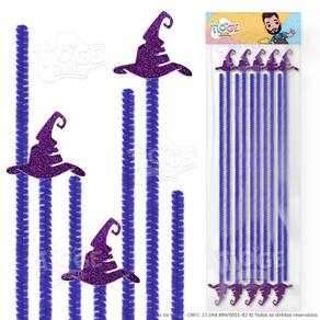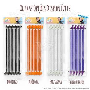 Itens da Embalagem: - 1 Pacote com 10 Hastes Flexíveis de Pelúcia na cor Laranja com apliques de Chapéu de Bruxa.
