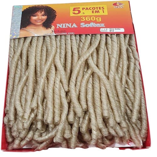 Cabelo Nina Soft Dread Fibra Sintética 360g Crochet Braid Cor: 613 Aplique de Cabelo Nina Soft Dread Fibra Sintética 360g Fibra sintética especial, cabelo vem com os cachos bem fechados como se fosse um tubinho, para colocação do método Crochet Braid, utilizando uma agulha. Especificações: Material: Fibra Sintética Marca: Cherey Peso líquido: 360 gramas Estilo: Trança/Trançado/Dread Tamanho: 60cm Método: Crochet Braid/Entrelace Não aceita Quimica nem Temperatura por ser um cabelo sintético. Recomendações e Cuidados: Lave e passe condicionador normalmente Desembarace o cabelo com cuidado antes de lavar Não esfregue ou torça o cabelo com força Adicione shampoo suave a água morna e mexa o cabelo até limpar Tire o excesso de água com uma toalha e deixe o cabelo secar naturalmente Não escove os cabelos encaracolados Penteie suavemente com os dedos Quantidade indicada: De 1 a 2 pacotes dependendo da espessura da trança.