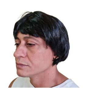 Produzida com cabelo de fibra sintética de alta qualidade, essa peruca possui um tamanho único com touca esticável, se adaptando perfeitamente a diferentes formatos de cabeça. Além disso, sua cor preta intensa garante um visual sofisticado e natural.