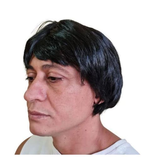 Peruca Sintética Curta Lisa Preta Feminina/ Masculina