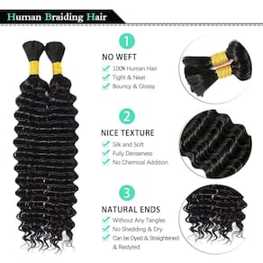 Cabelo humano trançado para tranças Boho Bohemian Deep Wave Bulk 100% cabelo humano para trançar cabelo humano molhado e ondulado 61 cm para tranças boho sem nós sem trama 2 mechas 100 g extensões de - ?Cabelo humano trançado para tranças Boho Dica?Um pacote não é suficiente para criar um penteado, mais pessoas optam por pedir 100 g mais 100 g para poder fazer um penteado mais perfeito - ?Comprimento e cor do cabelo humano trançado?Cabelo humano de ondas profundas para trançar com uma ampla variedade de cores (#1B/#2/#4), comprimentos (40.6-71.1 cm) disponíveis, você pode escolher a combinação perfeita para suas preferências e alcançar o visual desejado - ?Material de cabelo humano trançado? Usamos 100% cabelo humano virgem brasileiro 10A não processado, a textura do cabelo humano boho tranças é incrivelmente macia, suave e fácil de manusear, parecendo muito com cabelo natural - ?Cabelo boho para trançar mais amplamente utilizado? O cabelo encaracolado humano trançado oferece grande versatilidade, não apenas adequado para tranças boêmias, tranças sem nó, tranças boho e tranças de caixa, mas também permite um estilo fácil para diferentes visuais modernos - ?Cabelo humano a granel para trançar longa duração?Devido à sua composição de cabelo real de alta qualidade, o cabelo humano trançado molhado e ondulado é excepcionalmente durável, mantendo seu apelo estético por longos períodos. Isso garante que você possa usar esses penteados com confiança