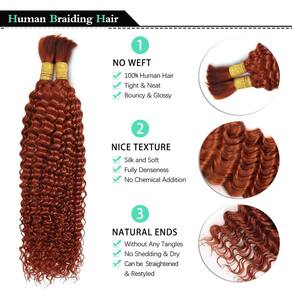 Cabelo Humano Gengibre Escuro Trança 100 g 61 cm Boho Encaracolado Sem nós 12A Onda Profunda Boêmio 2 Pacotes / Pacote Cobre (#350, 24 polegadas)