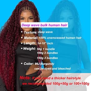 3. Textura do cabelo: Cabelo humano a granel ondulado profundo para trançar.