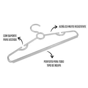 Cabide acrílico transparente kit 6 cristal resistente adulto Belos cabides feitos em acrílico transparente, ótimos para todo tipo de guarda roupas, desde um fechado à um aberto, onde suas roupas serão penduradas de forma segura e minimalista. Não enverga, pois seu material é bem resistente e espeço, tendo cerca de 6 mm de espeçura. Medidas:Largura - 41cmAltura - 19cmEspeçura - 6mm Peso:Unitário - 50gKit 6 unidades - 300g Material:- acrílico Cor:- transparente Roupas não inclusas, apenas os cabiedes - entregam para todo país Quem somos Marca: Dupétriz