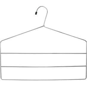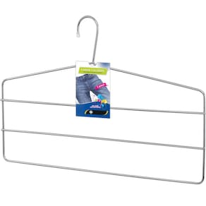 O cabide para roupas é o utensílio indispensável em seu guarda-roupas ou closet. Com ele, você otimiza seu espaço, guardando 3 calças no espaço de um cabide. É leve e resistente à corrosão. Em aço cromado, não mancha suas roupas. Ean: 7897089800132