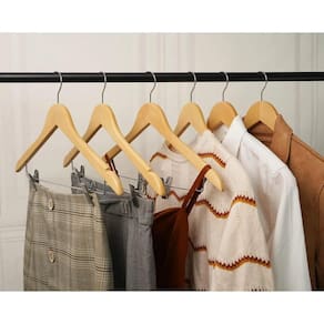 Fabricado em madeira de alta qualidade com acabamento envernizado Superfície lisa e elegante que evita lascas e protege contra umidade Prolonga a vida útil das suas peças favoritas Gancho metálico cromado que gira 360, facilitando o uso em qualquer direção Suporta uma variedade de roupas: casacos, blazers, camisas, vestidos e calças
