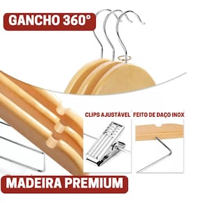 Kit de 10 Cabides de madeira marfil com clips Casita ideal para organizar seu armário de forma rápida e fácil.Características:• Cor: Marrom Claro• Material do Cabide: Madeira• Material do Gancho e das presilhas: Metal• Peso suportado: Até 5kg• Ideal Para: Cintos, Calças, Casacos, Gravatas, Entre Outras Peças.Dimensões:• Altura: 23 cm• Comprimento: 44 cm• Espessura: 1,2 cm• Peso: 110 gITENS INCLUSOS:10 Cabides de Madeira Com Presilha