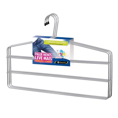 Conjunto composto por 03 cabides produzidos em aço cromado. Resistentes, os produtos são ideais para pendurar calças. Conta com base móvel, para prender a roupa e evitar que a peça escorregue, mantendo-a sempre bem passada. Aposte em itens que otimizam seus espaços sem perder o conforto e a sofisticação.