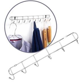 Cabide de Parede Inox 6 Ganchos 35cm - Cabideiro Organizador Maximize o espaço em sua casa com o elegante e funcional Cabideiro de Parede em INOX Cromado. Com seis ganchos robustos, este suporte é ideal para organizar roupas, toalhas, panos, vassouras, rodos, chaves e muito mais. Seu design compacto e resistente o torna perfeito para uso em áreas de espaço limitado como quartos, banheiros e halls de entrada.