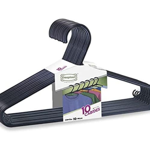 Cabide De Plástico Para Roupa Dasplast 10 Unidades Cabide feito para ter o melhor custo/benefício do mercado Tenha um excelente qualidade com um preço acessível Seja para uso pessoal ou uso comercial Durável, ideal para camisetas, casacos leves e vestidos com alça. Proporciona melhor aproveitamento do espaço no guarda-roupa e te ajuda manter suas roupas sempre alinhadas. Especificações Técnicas:Produto: Cabide para RoupasMarca: DasplastMaterial: PlásticoCor: pretoDimensões do produto (A x L x P): 0,4 x 34 x 19 cm -BENEFÍCIOS: Estrutura Reforçada Ideal Para: Casacos, Ternos, Meias, Cintos, Calças, Gravatas Super leve 50 Gramas Design bonito e Clean
