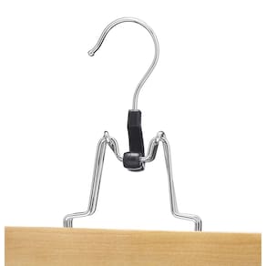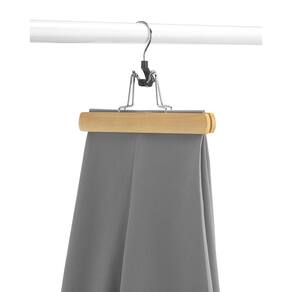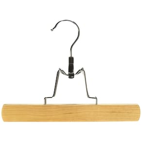 Add a touch of elegance to your closets with these wood slack hangers. These solid wood trouser clamps are perfect for hanging and organizing pants and skirts in any closet. These wood slack hangers feature a glossy natural finish. A chrome swivel hook adds the finishing touch to these stylish wood slack hangers.; ; Brand Name: Whitmor Height: 6-1/2 in. Width: 1 in. Length: 9 in. Material: Wood Color: White Product Type: Slack Hanger Number in Package: 5 pk 1" x 9" x 6.5". Chrome neck. Clear lacquer finished wood.