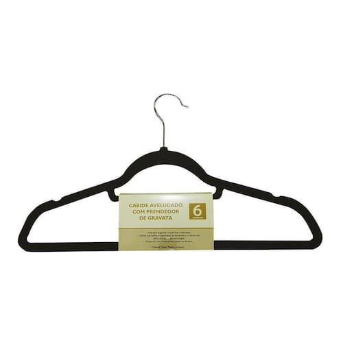 Cabide Aveludado com Prendedor de Gravata. - Ideal para organizar roupas finas e delicadas. - Facilitam a organização do seu armário, o veludo não deixa que sua roupa escorregue. - Design Slim que ocupa pouco espaço no armário. - Material: Metal, Plástico e Veludo. - Dimensão: 45cm x 23,5cm x 0,5cm - Contém: 6 Cabides Aveludados - Marca: Niazitex Ean: 7899967037388