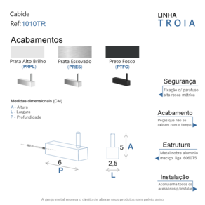 - Fabricado em metal alumínio de excelente qualidade. - Pode ser instalado em parede, azulejo e porcelanato. - Possui dupla fixação e não permite que a peça gire na parede. - Sob encomenda fabricamos para superfície de vidro, granito, Drywall, MDF e outros.