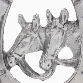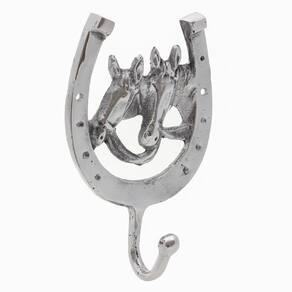 Este é novidade da nossa marca exclusiva Bronc-Steel, um Cabide ferradura com cabeças de cavalo em Alumínio rico em detalhes, é o modelo ideal para quem quer trazer um estilo western ao ambiente, perfeito para pendurar seu casaco depois de um dia longo na fazenda. Modelo fixado à parede por parafusos por meio de 2 buracos.