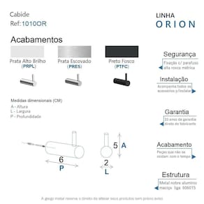 O cabide da linha Orion possui um design versátil, é uma peça que se destaca com minimalismo. Além de decorar, organiza com funcionalidade o banheiro. Criado em metal nobre com uma qualidade que abrange áreas litorâneas e possui a de um acabamento muito resistente. Agora é só você adquirir este lindo acessório e fazer o seu projeto se tornar realidade com um banheiro prático para toda a sua família. Características Fabricado em metal alumínio. Disponível no Prata Alto Brilho, Escovado e Preto Fosco. Pode ser instalado em parede, azulejo e porcelanato. Benefícios Fixação prática e segura com parafusos e buchas inclusos. O produto não possui nenhum detalhe em plástico ABS . Fácil higienização, ideal para locais que exigem limpeza constante. Aproveitamento inteligente do espaço, ideal para ambientes compactos. Resistente à corrosão e luz solar. Itens ENVIADOS: 1 cabide, kit de parafusos e manual instrução instalação. Instalação INTELIGENTE Ao 1º furo, use uma broca medida menor, após use a medida correta e finalize, vai ajudar na precisão da fixação da bucha principalmente em azulejos e porcelanato. Marca: Não Informado