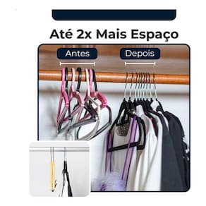 Organização Eficiente: Cabides finos que maximizam o espaço no guarda-roupa, permitindo que você mantenha suas roupas organizadas.