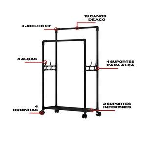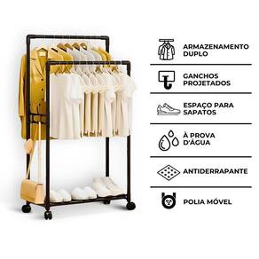 Cabideiro Arara Dupla Multiuso com Lugar para Sapatos