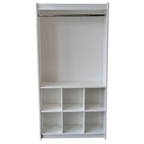 Descrição Comercial: Nosso cabideiro com nicho inferior em MDF é ideal para quem busca otimizar o espaço sem abrir mão da beleza e da resistência. Medidas Padrão de Cada Modulo Altura: 1,80mt. Largura: 0,90mt. Profundidade: 0,30mt.
