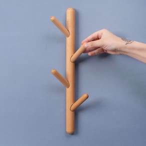 "conheça o cabideiro vertical de madeira para parede 4 pinos da Oikos!