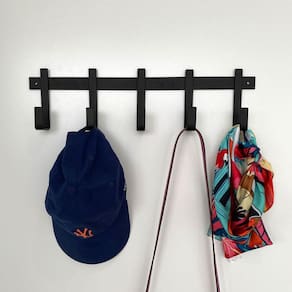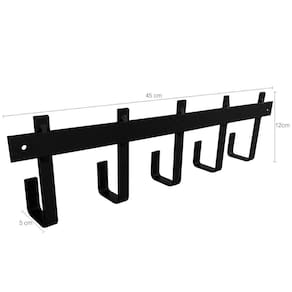 Garantia: 90 dias / Peso: 665g / Cor: preto / Ref: 31607Dimensões: 45cm (C) x 5cm (L) x 12cm (A);Dimensões de cada gancho: 1,5cm (C) x 5cm (L) x 12cm (A);Abertura interna dos ganchos: 4cm;Quantidade de ganchos: 5;Distância entre os parafusos para fixação: 42cm;Peso máximo suportado: 10kg distribuídos uniformemente.Cuidados e limpeza: - Lavar com pano levemente umedecido com água, seguido de pano seco;- Não utilizar produtos químicos ou abrasivos na limpeza;- Evitar batidas.Detalhes do produto:- Possui uma camada extra de protetivo aplicado sobre o preto que proporciona grande durabilidade e resistência à corrosão;- Os objetos que ambientam as fotos não acompanham o produto;- Acompanha parafusos e buchas para instalação;- Possui cinco ganchos em formato de “J”.Materiais:- Pintura epóxi;- Aço SAE.Este cabideiro preto com design industrial da MS Aramados possui cinco ganchos multiusos em um trilho de metal, adicionando instantaneamente um elemento decorativo, mas funcional às suas paredes. Feito em aço, com acabamento em pintura epóxi na cor preto, este cabideiro de parede é perfeito para pendurar seus acessórios, jaquetas e cachecóis enquanto mantém seu espaço organizado. De fácil instalação, pode ser utilizado em vários ambientes da sua casa, como: halls de entrada, quarto, closet, banheiro e até mesmo no escritório.
