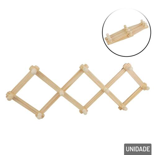 Cabideiro de Parede Madeira 10 Ganchos Sanfon Este Cabideiro de Parede em Madeira é a solução ideal para organizar sua casa com estilo e praticidade. Com 10 ganchos, oferece amplo espaço para pendurar roupas, acessórios, bolsas e mais, mantendo seu ambiente sempre arrumado.\nSeu design sanfonado permite que o cabideiro seja expandido ou compactado conforme necessário, proporcionando flexibilidade de uso e economia de espaço. A estrutura em madeira traz um toque de rusticidade e elegância, enquanto o acabamento robusto garante durabilidade e resistência. Perfeito para entrada, corredor, quarto ou qualquer ambiente que precise de um toque funcional e decorativo.\nEspecificações:\nMarca : TINGS\nTipo de material : Madeira\nCores ou Estampa : Marrom\nDimensões do Produto : 23 X 57 X 4 CM\nDimensões da Embalagem : 9 X 30 X 4 CM\nPeso Bruto (Gramas) : 0.100