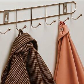 Perfeito para pendurar utensílios, roupas, toalhas, bolsas, lenços, bonés, chapéus ou acessórios, o suporte pode ser instalado em cozinhas, banheiros, quartos, closets ou áreas de . Sua estrutura metálica é leve, durável e suporta até 10 kg, mantendo o ambiente sempre organizado.