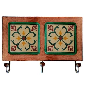 Cabideiro De Parede Rustico Ladrilho Hidraulico Para Roupas Bolsas Chaves Modelo D1m
