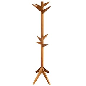 Altura: 164 cm Largura: 30 cm Profundidade: 30 cm Peso: 2 kg Cor: verniz imbuia; Material: madeira maciça; Itens inclusos: 01 cabideiro reticulado, kit de montagem, manual de montagem.