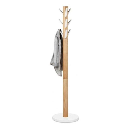 Feito de borracha natural com pe branco, o cabide flapper mede 1m65 e possui 9 ganchos que voce pode dobrar e desdobrar a vontade para uma economia de espaco. A sua grande base redonda com um diametro de 57 cm garante uma estabilidade muito boa.