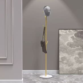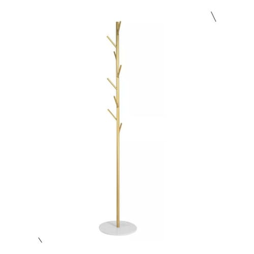 Seja na entrada de casa para receber visitantes com praticidade, no quarto para manter suas roupas organizadas e ao alcance, ou mesmo no escritório para pendurar casacos e bolsas, o Cabideiro Dourado com Base em Mármore é uma escolha versátil e elegante.