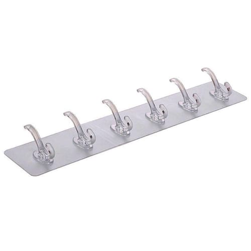 São 6 ganchos duplos, totalizando 12 ganchos para diversos tipos de uso.