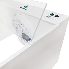 Cabine De Exaustão De Pó 40 Em Mdf 110V A Cabine de Exaustão para Exaustão de Pós tem como principal função a retenção de partículas sólidas, facilitando assim o trabalho de manipulação dentro da cabine. O micro ventilador irá direcionar as partículas sólidas para o conjunto de filtros que deverá ser substituído após a sua saturação. Equipamento construído em MDF 15mm laminado melamínico branco com visor em vidro de 4mm temperado. Fabricado em 110V. Itens que compõem a Cabine: - Filtro para retenção de particulado; - Luminária de 8w de LED; - Micro ventilador; - Tomada interna; - Interruptores independentes para lâmpada e exaustor; - Medidas Externas: LxPxA 70x40x40cm.