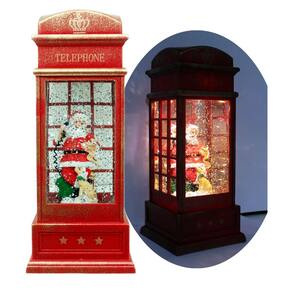 1 Luminária Decorativa Cabine Telefone Inglês Papai Noel Com Cachorro De 26cm;