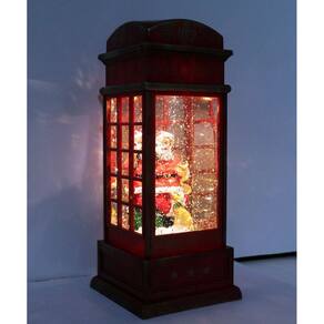 1 Luminária Decorativa Cabine Telefone Inglês Papai Noel Com Cachorro De 26cm;