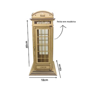 Quer decorar seu ambiente? Cabine telefônica de Londres é feita em madeira 3mm com a porta de abrir pivotante. Nossos produtos são feitos artesanalmente com madeira de alta qualidade cortado à laser com acabamento à mão, pensando para deixar seu ambiente mais elegante. Cabine de Londres é clássica na hora de decorar seu ambiente.