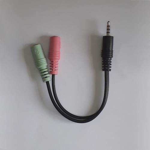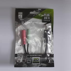 O cabo possui um conector p3 (macho) e dois conectores p2 (fêmea) sendo um rosa para microfone e um verde para fone de ouvido. Sua qualidade é estéreo com alta definição de som.
