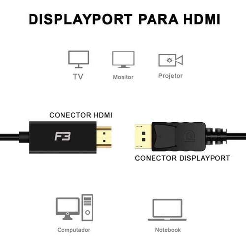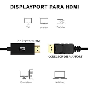 Atenção: esse cabo não funciona de hdmi para displayport Exemplo: placa de vídeo é hdmi e o seu monitor é displayport, esse cabo não serve dessa forma