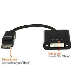 – Este produto só tem o perfeito funcionamento quando utilizado de DisplayPort para DVI, invertendo as conexões não existe compatibilidade de DVI x DisplayPort
