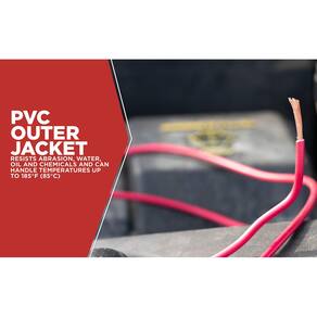 - Revestimento externo de PVC que resiste à água, óleo, produtos químicos, abrasão e pode suportar temperaturas de até 85°C (85°C)