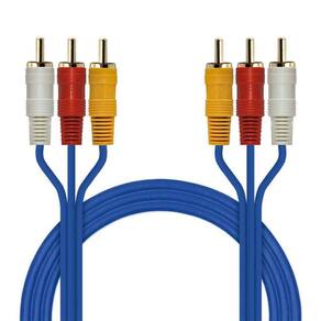 Cabo Auxiliar 3 RCA X 3 RCA Dourado 1,5m Vídeo Som Tv Cabo 3 RCA x 3 RCA Dourado O Cabo RCA é utilizado para transmissão de som de um equipamento.Indicado para ligação de equipamentos que devem enviar imagem e som saída RCA fêmea : Vídeo Cassete, DVD, Home Theather, Blu-ray, aparelhos de TV a cabo, etc Especificações:- Conexão: Plugs RCA macho banhados- Cabo emborrachado de alta qualidade e resistente- Padrão de cores: segue todas as normas, sendo: Amarelo Imagem , vermelho e branco áudio estéreo - Comprimento: 1,5m- Cor: Azul Conteúdo:- 1 Cabo Auxiliar 3 RCA para 3 RCA Dourado 1,5m