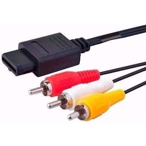 Cabo av composto 1,8m para snes, nintendo64 e gamecube, áudio estéreo e vídeo em rca - plug-and-play com conectores coloridos.