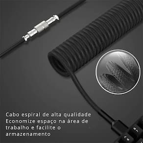 Descrição: Otimize a conectividade do seu teclado mecânico com o Cabo Aviador Enrolado USB-C. Com design trançado resistente e conector de aviação, oferece maior durabilidade e um visual sofisticado para setups personalizados. Compatível com todos os teclados mecânicos USB-C, seu fio de 5 núcleos com blindagem personalizada garante transmissão estável e confiável. Com 3 metros de comprimento, proporciona liberdade de movimento e organização do espaço. Disponível nas cores Preto, Branco, Vermelho e Roxo.