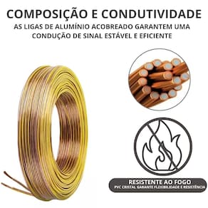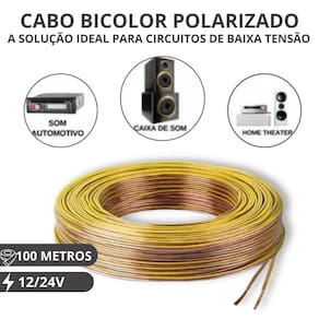 Cabo Bicolor Cristal Polarizado 100M 2x18,0,75mm² 12/24V- Segurança e Performance para Seus Projetos Você busca um cabo confiável e seguro para suas instalações? Apresentamos o Cabo de 100M Bicolor Cristal Polarizado da RP Brasil Fios e Cabos, a solução ideal para quem não abre mão de qualidade e segurança em seus projetos!Compatibilidade e EficiênciaCom a bitola 18 AWG (0,75mm²), este cabo é perfeito para sistemas de 12V e 24V, oferecendo a flexibilidade e a eficiência que você precisa para suas instalações de som automotivo, iluminações de baixa tensão, como LED e muito mais. Composição Flexível e Anti-chama – Seguro e DurávelO PVC Cristal(transparente) anti-chama é um material de isolamento que foi modificado para resistir à propagação de chamas, aumentando a segurança das instalações elétricas.Tenha a tranquilidade de saber que suas conexões estão protegidas com um cabo resistente à chamas, projetado para retardar a propagação do fogo e garantir a segurança do seu veículo ou sistema.Composição Interna As ligas especiais( Alumínio Acobreado) utilizadas na fabricação deste cabo garantem maior condutividade e durabilidade, assegurando o desempenho ideal para seus equipamentos. Indicação de PolaridadeA tarja amarela facilita a identificação dos polos, simplificando a instalação e evitando erros de conexão. Não perca mais tempo com cabos de qualidade duvidosa! Invista no Cabo Bicolor 2x18 AWG da RP Brasil Fios e Cabos e garanta a segurança e a performance que seus projetos merecem.ATENÇÃO: Este cabo não é adequado para instalações elétricas residenciais padrão (110V/220V) é projetado para aplicações de baixa tensão (12/24V) e baixa corrente. Não utilize em instalações elétricas residenciais padrão ou para alimentar equipamentos de alta potência. Especificações Técnicas: