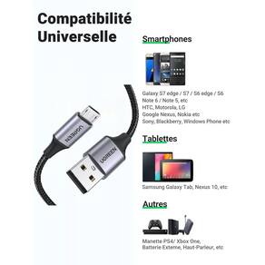 Carregamento rápido e sincronização de dados o cabo usb micro usb oferece carregamento rápido de até 18w 5v/3a e suporta as tecnologias quick charge qc , afc e fcp para carregar celulares e tablets equipados com uma porta micro usb na velocidade ideal. Suporta velocidades de transferência de dados de até 480 mbps. Dica: este é um cabo usb para micro usb, não compatível com/a/série/, usb tipo c ou interfaces mini usb. Tecnologia avançada: o cabo trançado ugreen micro usb suporta tecnologia de carregamento rápido, economizando muito tempo de carregamento. Para dispositivos com qc 2.0/3.0, saída máxima de 18w 12 v/15 a,9v/2a, 5v/2a ; para dispositivos sem qc 2.0/3.0, saída máxima de 5v/2a. Durabilidade externa: você pode conectar o conector no slot do seu dispositivo com muita facilidade, e ele não se soltará nem cairá dos seus dispositivos como um cabo comum. O exterior trançado de nylon do cabo usb para micro usb é bastante resistente e flexível. Transmissão de alta velocidade: o ótimo desempenho garante que seus dispositivos sincronizem e carreguem ao mesmo tempo, com velocidade de transferência de até 480 mbps. Compatibilidade universal: este cabo usb para micro usb pode carregar rapidamente a maioria dos dispositivos micro usb 2.0, compatível com/galaxy a10 / s7 / s6 / note5 / j8 / j7 / j5 / j4 / j3, p10 lite / p9 lite / p8 / p8 lite / p smart 2019 / nova 3i / y9 / y7 / y6 /mediapad/m3,/nokia/6 / 5, mi/a2/lite,/xperia/xa / z5 / z3, lg q6 / k8 / k7,/moto/g6 play/g5 /e4 / e5 play, note 7,/vodafone/smart/n8 /n9,/cubot/j3,/driver/de/tv/stick, etc. Inteligente e seguro: com chip inteligente atualizado integrado, este cabo micro usb trançado pode fornecer corrente de carregamento premium para seus dispositivos e evitar perigos como curto-circuito. Resistente e durável o revestimento de nylon trançado resistente protege contra danos e desgaste diário, mesmo com este cabo micro usb dobrado. A proteção reforçada do conector suporta mais de 10.000 inserções e 10.000 dobras. Conecte e desconecte dispositivos sem preocupações. No que você deve prestar atenção antes de comprar Confirme se a porta do seu dispositivo é micro usb não usb c . Por favor, confirme o comprimento que você precisa. Use um carregador de parede e um dispositivo que suportem carregamento rápido para atingir o carregamento rápido qc 2.0. Este cabo micro usb carrega e transfere dados rapidamente Sim, este cabo usb para micro usb suporta tecnologias de carregamento rápido qc , afc e fcp. A saída de carregamento é de até 18w e a transferência de dados é de até 480 mbps. -marca ugreen -cor preto -tipo de cabo usb -comprimento: 2 metros Homologação Anatel: 179422213686