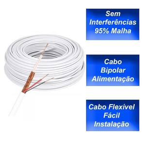 Itens inclusos: 1 rolo de cabo coaxial 4mm 95% com alimentação bipolar.