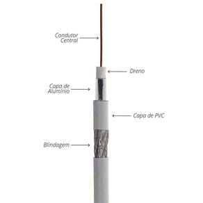 Cabo Coaxial Rg6 - 4 Metros Cabo Coaxial RG6 é ideal para instalação de antenas, CFTV, Parabólicas e sistemas de TV a cabo em geral. Possui malha de 95% e isolamento Interno de polietileno PVC 70C Anti Chama. Fita de poliéster aluminizada mais uma malha de fios de alumínio ou cobre estanhado 95%. Indicado para instalações de antenas VHF/UHF/Digital, parabólicas e sistemas DTH.