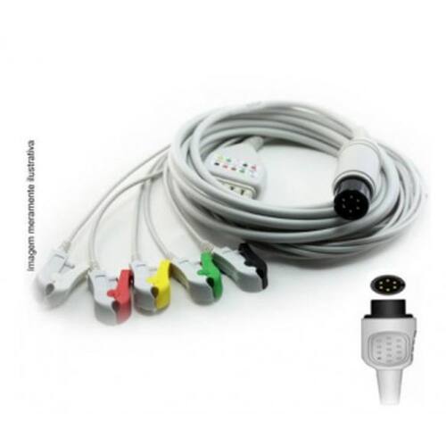 Cabo compatível com padrão americano fokkus/contec Indicado para utilização em procedimentos de eletrocardiograma ecg em repouso, esforço e monitoramento de paciente, é utilizado em conjunto com eletrocardiógrafos, monitores cardíacos e equipamentos multifuncionais ou multiparâmetros; São utilizados para avaliar, diagnosticar e monitorizar a função cardíaca dos pacientes nas unidades de terapia intensiva, centros cirúrgicos, ambulatórios, triagem, entre outros. Medidas do produto sem a embalagem Comprimento 5 cm Largura 20 cm Altura 7 cm Peso total 500 g Marca: Não Informado